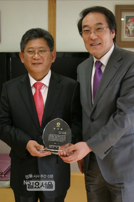 | ▲ 지난 6일 우신건설(주) 강상욱 대표(왼쪽)는 한국산업안전보건공단 대구지역본부로부터 지역의 산업재해예방 우수기업으로 선정되어 감사패를 받았다. | ||