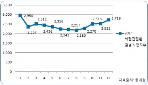 | ▲ 2007 뇌혈관질환 월별 사망자수, | ||