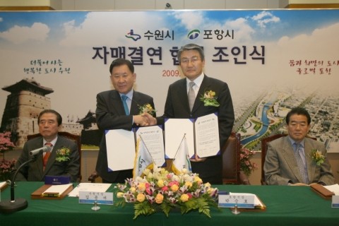 | ▲ 포항시-수원시 자매결연 조인식 | ||