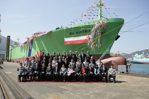 대우조선해양에서 10일 가진 노르웨이 BW GAS사의 선박 명명식에 오스트리아 대통령 영부인 ‘마르기트 피셔 (Margit Fischer)’ 여사가 선박의 이름을 명명하고 축복을 비는 대모로 나서 화제가 되고 있다.