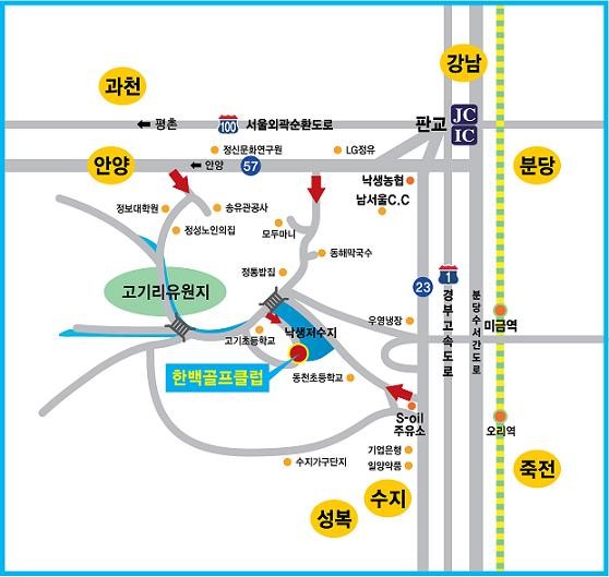 용인 수지 고기리에 위치한 한백골프클럽은 지상 3층으로 층당 32타석씩 총 96타석으로 수도권 최대 규모로 지워져 페어웨이 길이가 300m에 이르는 신개념 자연으로 둘러쌓인 수상골프장이다.