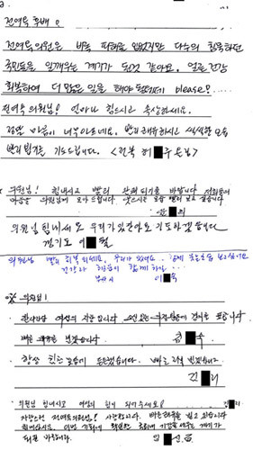 무명으로 편지를 보낸 이 사람은 "원래 일 많이 하고 바른 말 많이 하다보면 욕도 먹고 상처도 받는 법"이라며 "하루 속히 회복하셔서 이 나라의 잘못된 점 바르게 고쳐주시길"이라고 전 의원을 응원했다.
