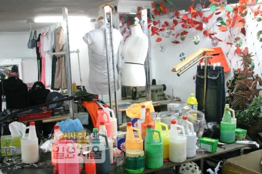 서울에서 소문을 듣고 찾아온 성유리(24ㆍ서울시 강서구)씨는 여러 벌의 낡은 청바지와 새로 구입한 듯한 청바지를 가져와 자신만의 청바지를 만들어 달라고 주문했다. 바로 작업에 들어간 곽씨는 “멋진 작품이 나올 것 같은데요”라며 거침 없이, 견본 없이, 밑그림 없이 바로 자수를 놓고 그림을 그려 층층이 치마를 만들고 바지를 잘라서 미니 청스커트를 만들었다.