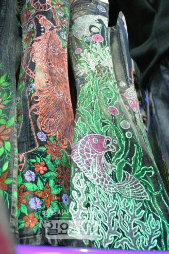 그를 찾아간 곳은 입구에서부터 범상치 않은 노래 소리와 드럼 소리가 들린다. 매장 가득 메우고 있는 것은 화려한 꽃무늬가 수놓아진 청바지, 알록달록 보석이 박힌 청바지, 그리고 명화가 그려진 청바지 등 다양한 디자인의 청바지들이 즐비하다.