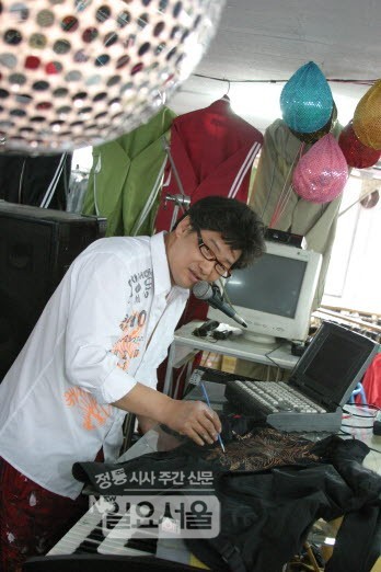 매장 한켠 드럼과 건반이 있는 곳이 곽씨의 작업무대다. 노래를 부르며 왼손은 건반연주 오른손은 청바지에 그림을 그린다. 7080세대인 그의 노래 실력은 수준급이다. 최고는 하루아침에 만들어지지 않는 법. 주변 상인들이 모두 문을 닫고 집으로 간 시각 홀로 가게 문을 닫고 청바지를 표현할 수 있는 방법과 디자인을 연구한다. 지금은 세계적인 명화들을 나름대로 각색해서 청바지에 그리는 작업을 한다.
