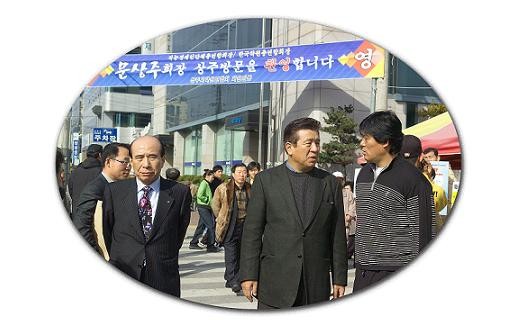 ▲ 재래시장장보기운동의 주역인 도동환 상임고문과 문상수 총회장 |