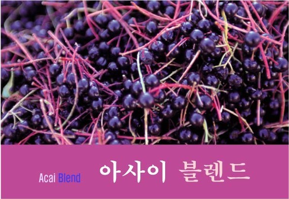 @ 아사이(Acai)-브라질 아마존이 원산지로 인디언들에게는 ‘눈물 위 열매’로 불려진다. 식용 가능한 것은 열매의 살과 껍데기 추출 엑기스이며, 현재 전 세계인들에게 영양 면에서 가장 높은 종합 자연식으로 호평 받고 있다. 아사이에 들어있는 안토시아닌의 함유량은 적포도의 최대 33배, 블루베리 최대 6배이며 이는 몸속에서 활성산소와 유해무질을 흡수하는 기능이 뛰어나며 혈관 흐름의 원활한 작용을 도와준다. 세계 수퍼푸드 10위에 선정된 바 있다.