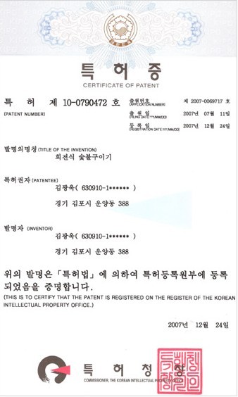 2007.12. : 회전식 바비큐 발명 특허 등록 완료