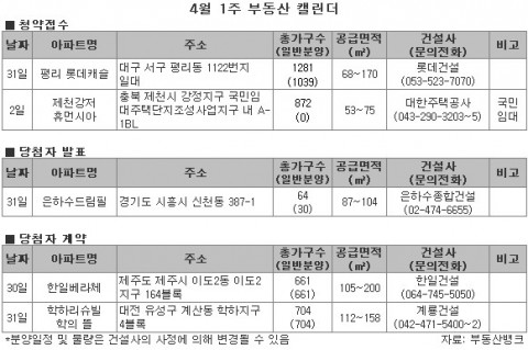 대구와 충북 제천에 각각 선보이는 이들 단지는 실수요자들이 선호하는 소형 평형으로 구성돼 있는데다, 주변 시세보다 저렴한 가격으로 공급될 예정이어서 눈길을 끌고 있다.