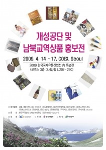 오는 4월 14일부터 17일까지 코엑스 3층 대서양홀에서 개최되는 2009 한국국제유통산업전 내에는 “개성공단 및 남북교역 상품홍보전”이 특별관으로 전시된다.