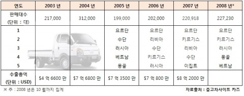 실제 지난 23일 현대자동차가 발표한 지난 1분기 경영실적에서도 나타나듯이 수출로 187,114대를 판매한 반면, 내수판매는 이보다 적은 129,252대로 나타나 국내 자동차판매가 내수 판매가 아닌 수출에 더 많이 의존하고 있음을 단적으로 보여주고 있고 자동차 수출하면 의례 신차 수출을 떠올리는 것이다. 하지만 신차 수출에 비해 아직은 미약하지만 중고차도 수출이 이뤄지고 있다.