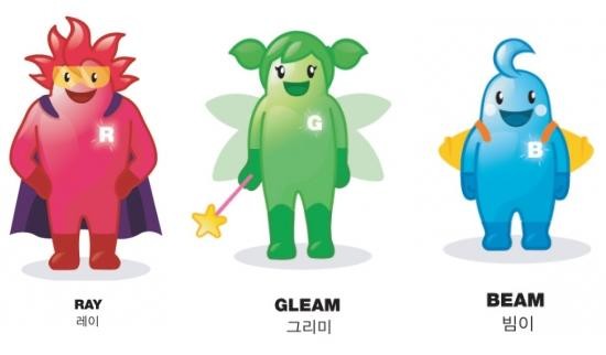 ‘2009광주세계光엑스포’의 공식 마스코트인 레이, 그리미, 빔이는 빛의 3가지 구성요소인 레드, 그린, 블루를 기본모티브로 하고 있다. 3가지 마스코트는 빛과 관련된 다양한 의미를 내포하면서도 동시에 대중들에게 친근감을 주는 캐릭터다.