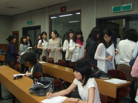 ▲ 서울시내 주요대학에서 진행된 S맥주 홍보대사 현장 모집에 여대생들의 참가 신청이 줄을 잇고 있다 |