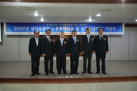 대한주택보증과 대한주택건헐협회(회장 김영수)는 2일 서울 여의도동 본사 11층 대강당에서 주택업체대표, 국가유공자대표, 국토해양부 국가보훈처 관계자 등 1백여명이 참석한 가운데 2009년 국가유공자 노후주택보수 및 임차자금지원 기념식을 개최했다.