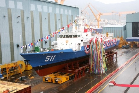 대우조선해양이 21일 남상태 사장, 이길범 해양경찰청장을 비롯 남해지방해양경찰청장과 마산지방해양항만청장, 거제시의회의장 등이 참석한 가운데 500t급 최신경비함 ‘태극11호’ 진수식을 가졌다.