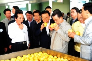 이어 성주군에 소재한 참외수출영농조합(대표 김상곤)을 방문, 최근의 어려운 경제여건 속에서도 입맛이 까다롭기로 소문난 일본시장에 수출확대를 위해 노력하고 있는 성주 참외수출단지 관계자·농업인들을 격려하였다.
