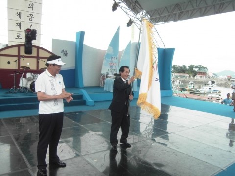 ‘푸른 꿈, 힘찬 도전, 밝은 미래’의 슬로건을 걸고 2010년 포항서 개최될 ‘제5회 전국해양스포츠제전’의 대회기가 10일 4회 대회지인 통영시로부터 포항시에 전달됐다.