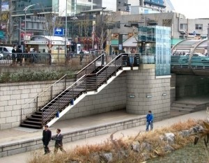 ▲ 청계천 삼일교에 설치된 승강로 방수형 엘리베이터 모습 |