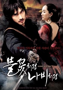 모두가 알지만 아무도 몰랐던, 명성황후 ‘민자영’과 그녀를 위해 모든 것을 바친 호위무사 ‘무명’의 가슴 시린 사랑을 그린 <불꽃처럼 나비처럼>. 서양식의 청록색 드레스를 입은 명성황후의 모습으로 화제를 모았던 티저 포스터에 이어 이번에 공개된 2종의 본 포스터는 광풍의 역사 속 명성황후 ‘민자영’과 그녀를 지키는 호위무사 ‘무명’의 관계를 담아 아련한 느낌을 전달한다.