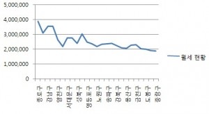 실제로 지역별 평균 월세를 조사해 본 결과 종로구 자영업자들은 점포 면적 1㎡당 7만5619원, 강남구 자영업자들은 1㎡당 7만628원으로 전국 최고 수준의 임대료를 지불하고 있는 것으로 나타났다. 50평 점포일 경우 매달 380만 원 가량의 임대료를 내고 있는 셈이다.