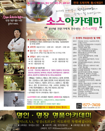 (주)핀외식연구소(www.food09.co.kr)는 오는 8월 전국 5개 도시에서 외식업 관련 경영주와 주방장 등 예비창업자를 대상으로 2010년 하반기 ‘소소아카데미’교육을 진행한다고 30일 밝혔다.