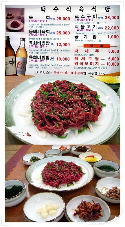 ▲ 백수식당 대표메뉴 ‘육회’ |