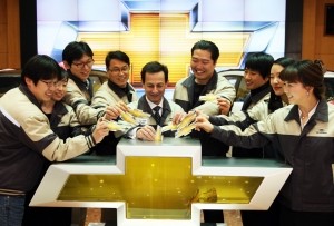 ▲ GM대우 아카몬 회장과 직원들 모습 |