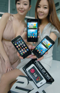 ▲ SK텔레콤과 LG전자는 25일 ‘두 개의 두뇌’, 듀얼코어를 탑재한 스마트폰 ‘옵티머스2X’를 국내 시장에서 세계 최초로 선보였다. |