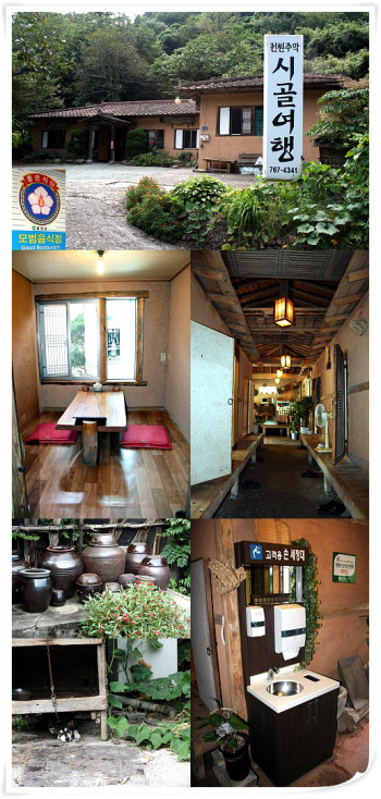 달성군 모범음식점인 ‘시골여행’ 내부는 다양한 소품들로 눈길을 끈다. 입구에는 손세정대가 있어 고객의 건강을 생각하는 마음을 엿 볼 수 있다. 짚신, 징, 호박넝쿨, 장구, 북, 호롱불 등 옛 추억을 떠올리기에 충분하다. 주위에 남지장사, 녹동서원, 한일우호관 등 계곡과 숲이 있어 주말이나 피서 철에 가족단위 나들이 장소로 손색이 없다. 문의 053)767-4341