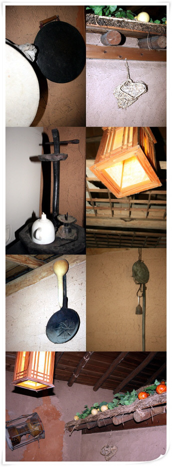 ▲ 내부는 짚신, 징, 호박넝쿨, 장구, 북, 호롱불 등 옛 추억을 떠올리기에 충분하다. |