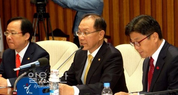 ▲ [일요주간=윤영석 기자] 황우여 원내대표가 18일 오전 국회에서 열린 원내대책회의에서 "여,야간 이견이 없는 법안 1300여건을 의사일정 되로 처리해서 준법 국회의 원년으로 삼아야 한다"고 말하고 있다