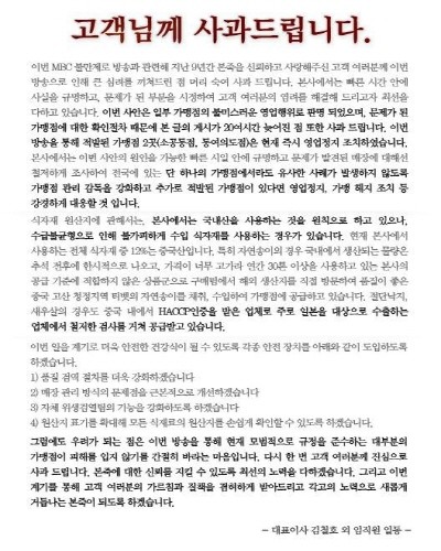 ▲ (사진=본죽 홈페이지에 게재된 사과문) |