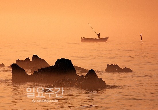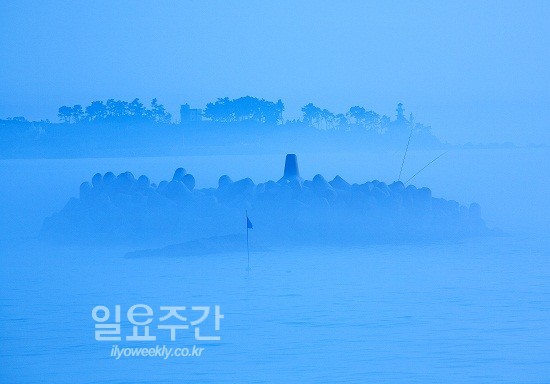 뿌연 안개에 수평선은 더욱 흐려지네..