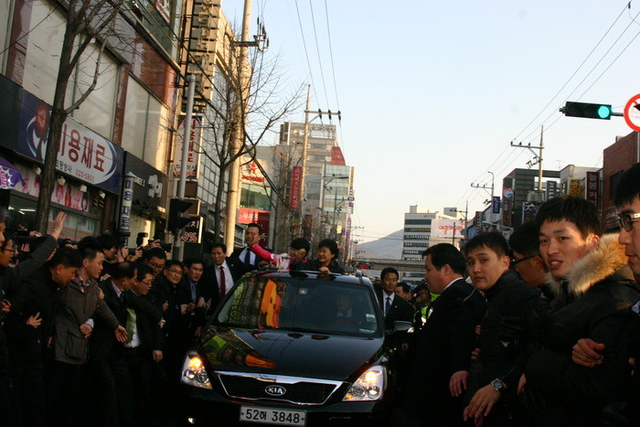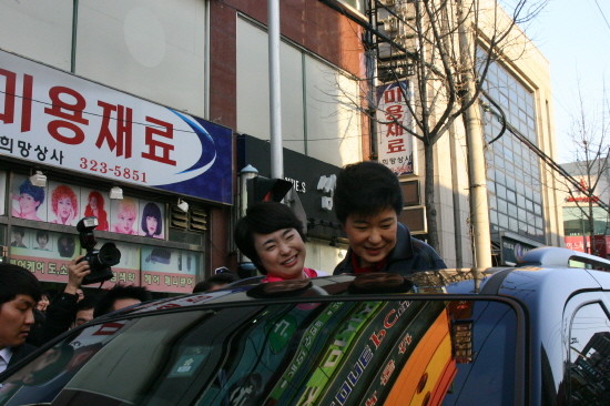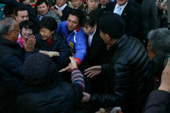 특히 박 위원장과 손 후보가 인근 재래시장인 덕포시장 방문을 위해 사무실 밖으로 나오자 도로는 아수라장이 되었고 주민들은 박수를 치며 "박근혜"를 연호했으며, 이 가운데 박 위원장과 손 후보와 박 위원장은 나란히 손을 흔들며 '카퍼레이드'를 했다.