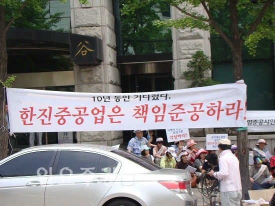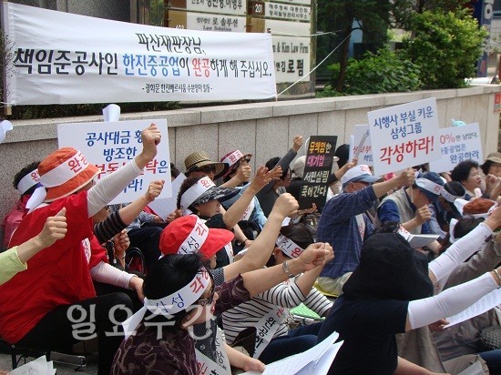 이들은 지난 30일(화)부터 “판사님, 한진중공업이 완공하면 다 해결됩니다. 완공하게 해 주세요”라며 “공매하면 다 되는 겁니까? 수분양자들을 해결하라”라고 외치고 있다.