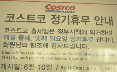 ▲ 외국계 대형마트인 코스트코 역시 정부 시책에 따른 의무 휴무를 고객에게 공지했다. |