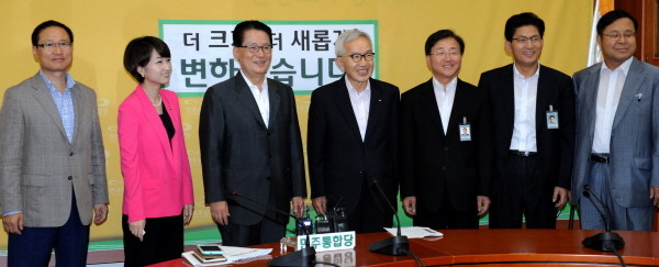 16일 오전 11시 경제 5단체인 대한상공회의소, 전국경제인연합회, 한국경영자총협회, 무역협회, 중소기업중앙회 부회장단은 서울 여의도 국회의사당내 민주통합당 원내 대표실을 방문해 박지원 대표(70)를 만나 ‘재벌 때리기 자제’와 관련, 입장을 전달했다.