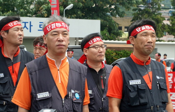 | ▲ 지난 13일 금속노조와 함께 파업 출정식을 갖은 현대-기아차 노조ⓒNews1 | ||