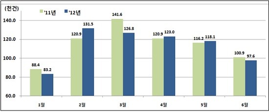 국토해양부는 계절적 비수기 영향으로 지난 3월 이후 4개월 연속 전월대비 감소한 것으로 나타났다고 설명했다.