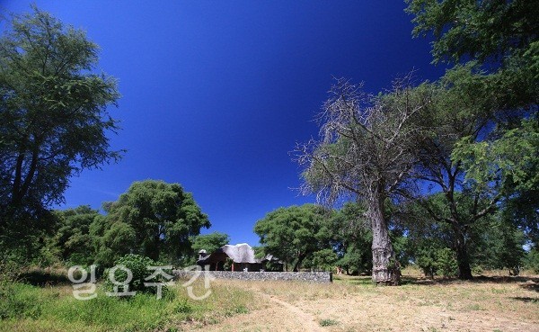 (오래된 바오밥나무와 파란 하늘이 도자기 스쿨을 더욱 돋보이게 한다.)
