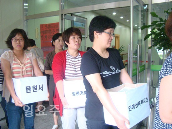 [일요주간=노정금 기자] '제2의 도가니 사건'으로 불리는 천안인애학교 성폭력 사건이 선고공판을 앞두고 천안인애학교 성폭력사건 시민대책위가 23일 법원천안지청에 4845명의 탄원서를 제출했다.