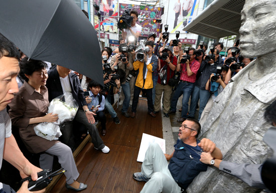[일요주간=노정금 기자] 새누리당 박근혜 대선 후보가 28일 전태일 재단을 방문할 예정이었지만 유족 등의 반발로 무산됐다. 또 서울 청계천변에 있는 故전태일 열사 흉상에 헌화도 기륭전자와 쌍용차 노조원의 반대시위에 온전히 진행되지 못했다.