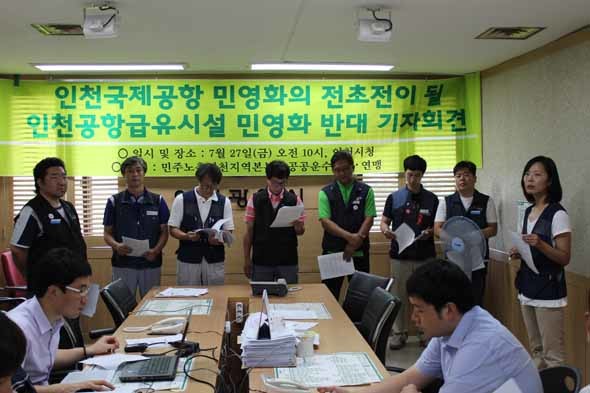 공공운수노조 인천공항지역 조성덕 지부장은 인천공항급유시설(주)매각에 분노를 삭이지 못했다. 그는 “사업권이 대한항공과 아시아나 중 어느 쪽으로 넘어갔느냐는 중요한 것이아니다”라며 “그 동안 대한항공이 특혜의혹을 받아온 것은 사실이지만 결국 아시아나 역시 재벌대기업으로 결국 인천공항의 ‘민자사업화’를 위한 전초전이 시작된 것임에는 분명하다”고 밝혔다.