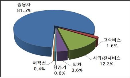 이용 교통수단은 승용차가 81.5%로 가장 많고, 버스 13.9%, 철도 3.6%, 항공기와 여객선이 각각 0.6%와 0.4%로 조사되었고 고속도로별로는 경부선이 30.4%, 서해안선이 14.7%, 호남선(천안-논산선)이 8.6%, 중부선이 10.8%, 영동선이 8.2%순이었다.