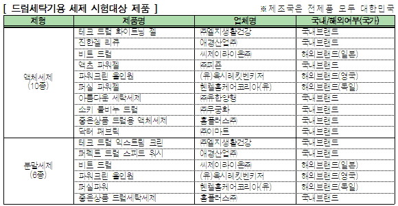 26일 한국소비자원은 드럼세탁기용 세제의 품질과 가격을 비교한 자체 연구지 '비교공감 제9호'에서 현재 대형마트와 백화점 등에서 판매중인 드럼세탁기용 세제 16종에 대한 조사결과를 발표했다.