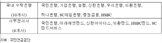 국민연금기금 운용규정 제 82조 2항을 보면 “공단은 운용자산의 안전한 보관·관리, 사무관리 및 출납업무 수행을 위하여 자산보관회사(수탁은행), 사무관리회사 및 주거래은행을 둘 수 있다. 이 경우 각 회사는 ‘재무 건전성’과 업무능력 등을 고려하여 선정되어야 한다”고 명시하고 있다.