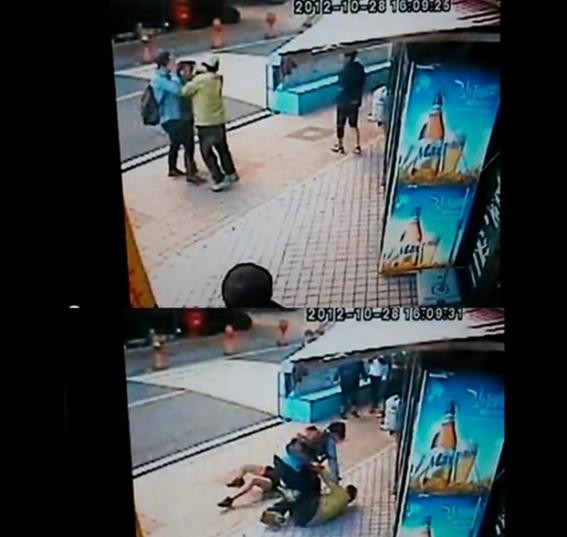 이를 보다못한 남자친구가 노인을 말리려다 노인과 주먹 다짐을 하며 싸우는 장면이 고스란히 담겨져 있다. 취객은 그런 와중에도 끝까지 여성의 머리채를 놓지 않고 있다.결국 주변 시민들의 제지로 싸움이 진정됐다.