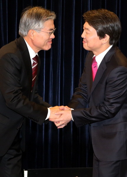 안 전 후보는 "오늘 문 후보께서 새정치 실천과 정당혁신에 관한 대국민 약속을 하셨다. 정권교체는 새정치의 시작이 될 것이다"면서 "지금 제가 할 수 있는 일을 적극적으로 해야 한다는 책임감을 느꼈다.그 길을 위해 아무 조건 없이 제 힘을 보탤 것"이라고 강조했다.