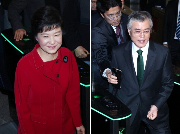 제 18대 대통령 선거를 이틀 앞둔 17일, 선거 전문가들이 대선 레이스 이후 처음으로 의견을 하나로 모았다. 신규 여론 조사 결과에 대한 공표가 끝난 지난 13일 이후 양 측 후보 간 지지율 격차가 상당히 좁혀지고 있다는 판단에서다. 대선 레이스를 단 이틀 남겨둔 상황에서 방어에 나선 새누리당 박 후보와 이를 추격하는 민주통합당 문 후보 가운데 최후의 승자를 예단하긴 어렵다는 분위기다.