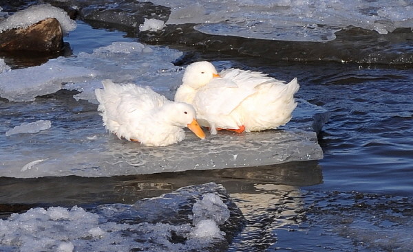[일요주간=이장우 기자] 올해의 마지막 날을 하루 앞둔 30일, 서울 여의도 한강시민공원 부근에서 오리들이 포착됐다. 한강이 결빙온도로 내려가 얼어 붙은 가운데 얼음 조각 사이로 피신한 오리 2마리가 갈 곳을 잃은 듯한 모습이다.